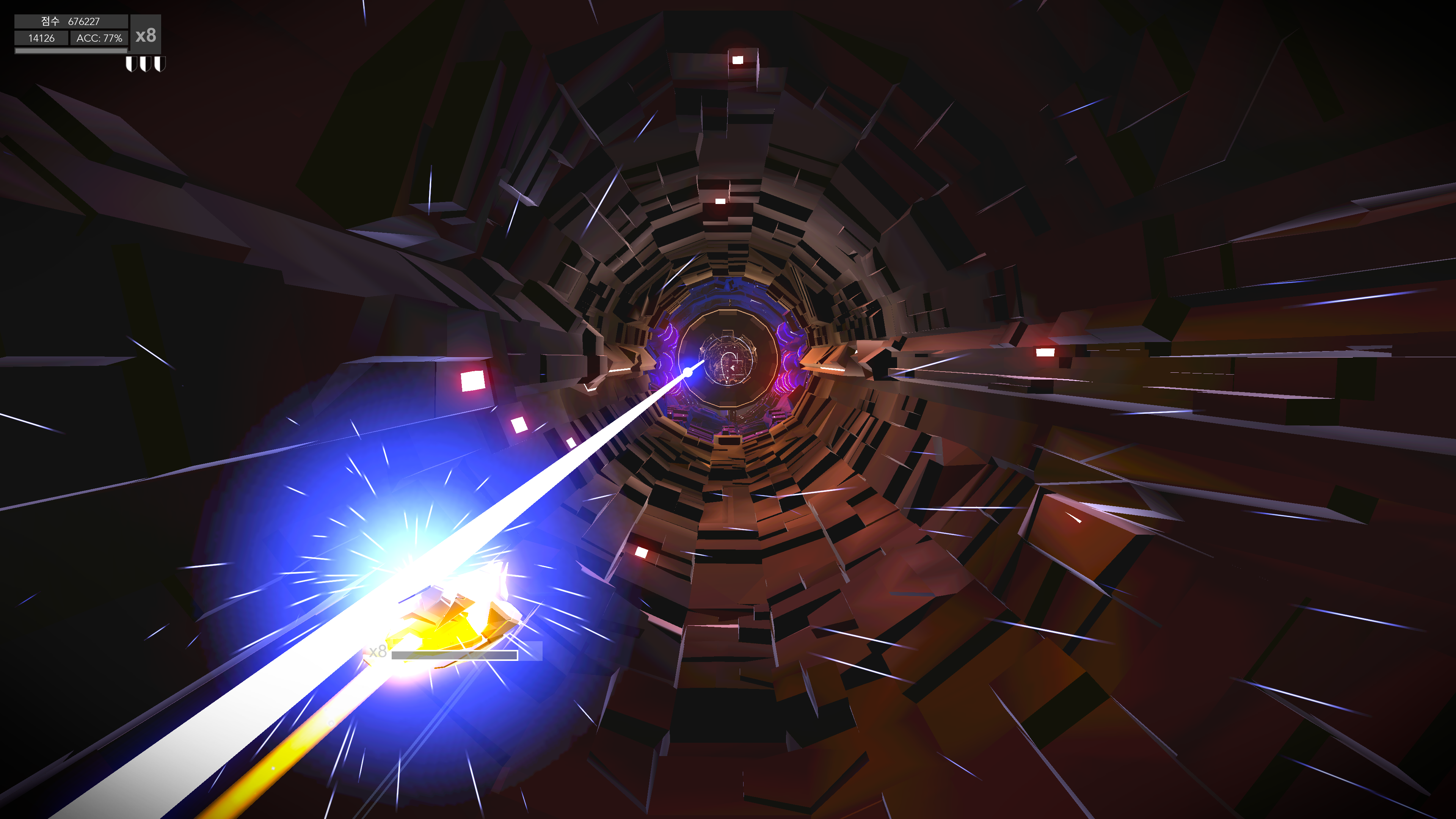 그러나 이 게임에서 트랙이나 적 출현 타이밍이 음악이랑 거의 상관없이 구성되어있어서 음악과 따로 노는 것 같아서 리듬 게임이라고 하기에도 애매하다