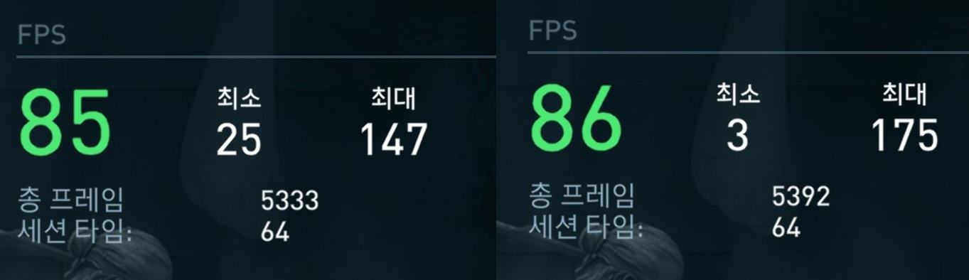 어크 유니티는 프레임이 많이 나아졌고 오디세이는 큰 차이가 없었다