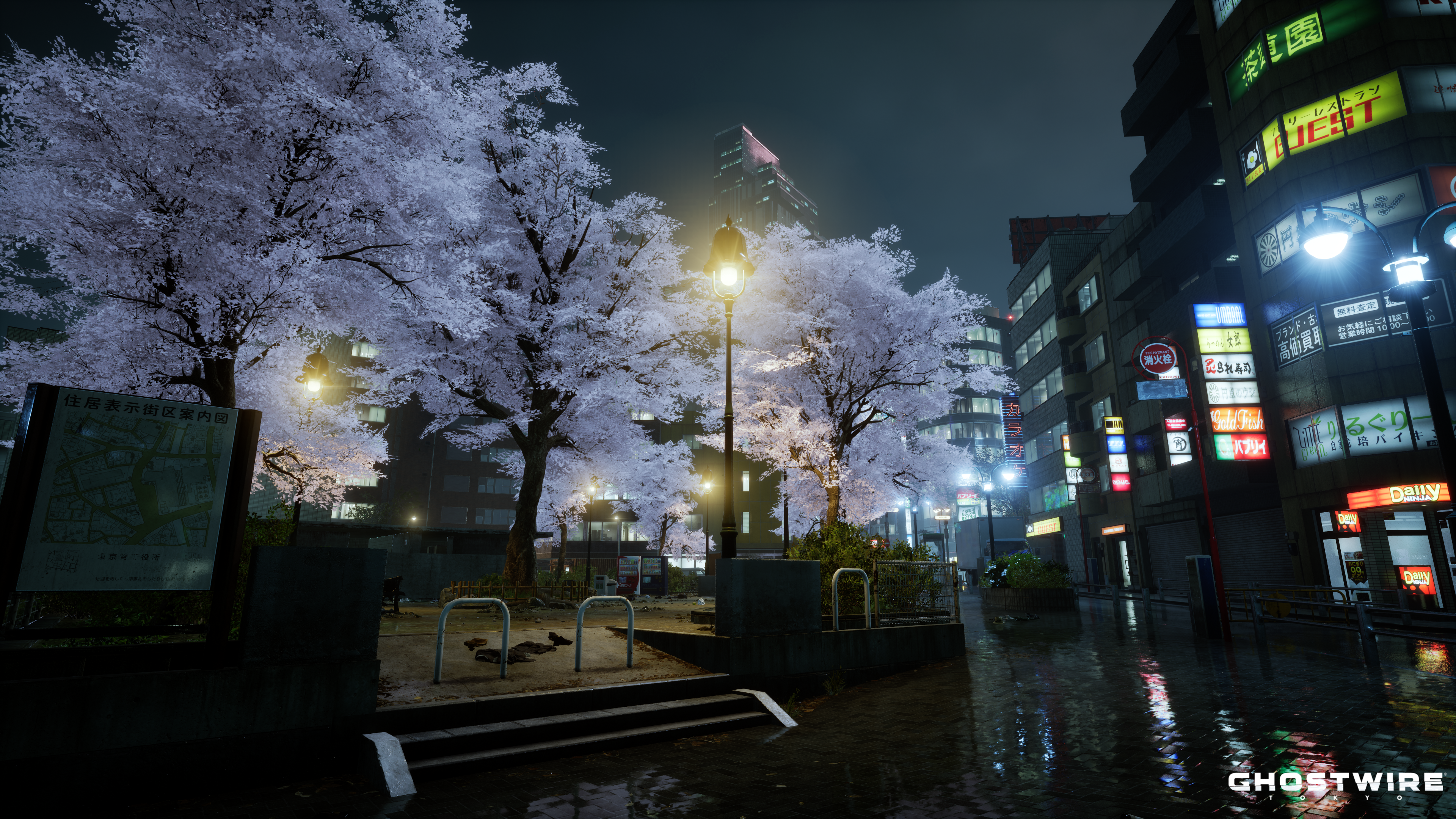 레이트레이싱 기술을 활용해 비 내리는 도쿄 도심을 오픈월드로 잘 구현해냈다