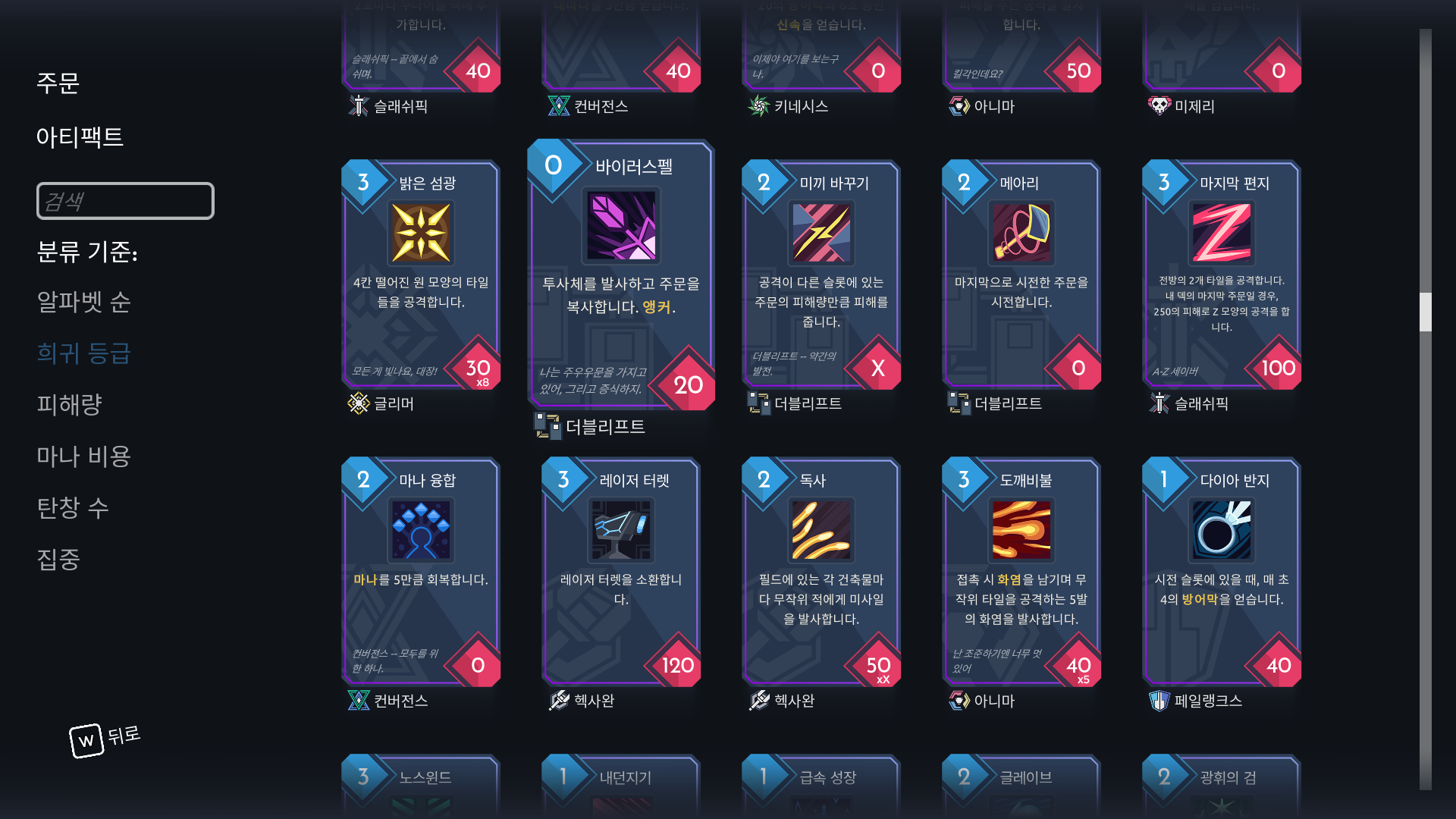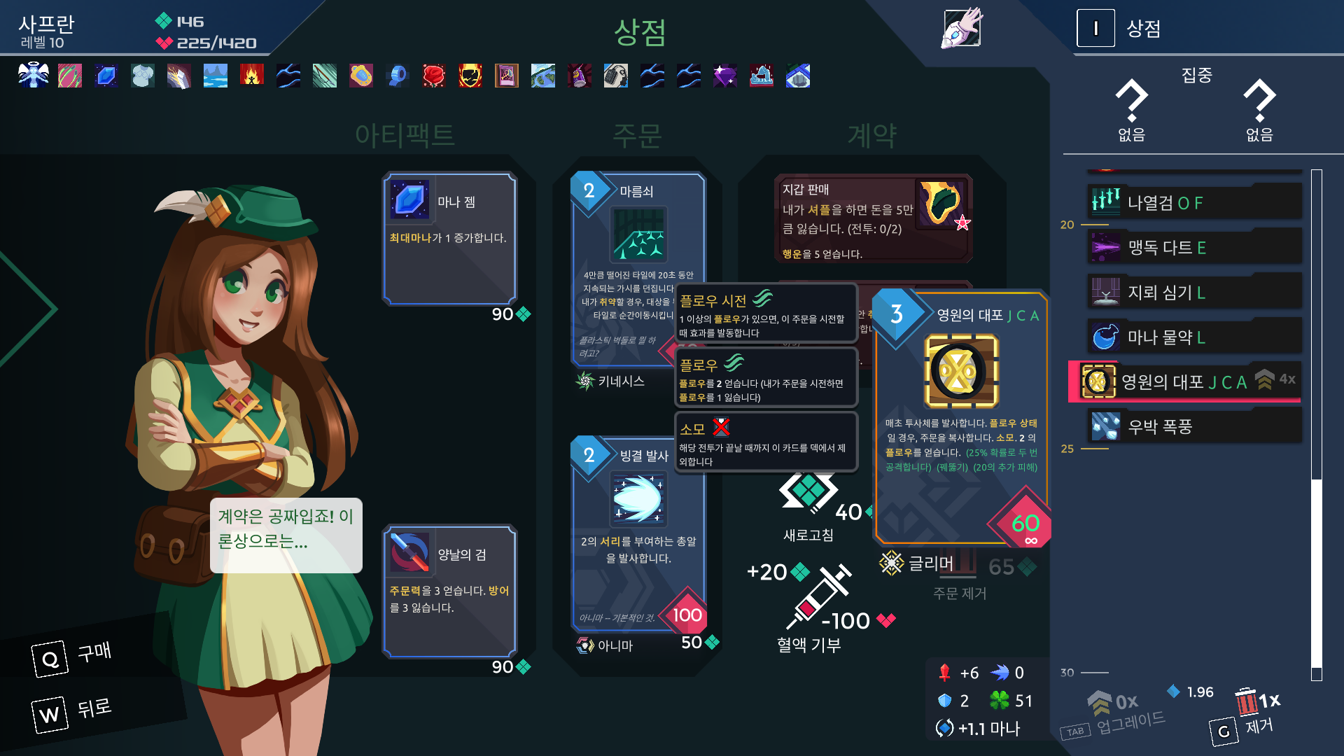 캐릭터마다 덱 구성을 다양하게 할 수 있지만 아티팩트가 조금 한정적인 느낌이었음