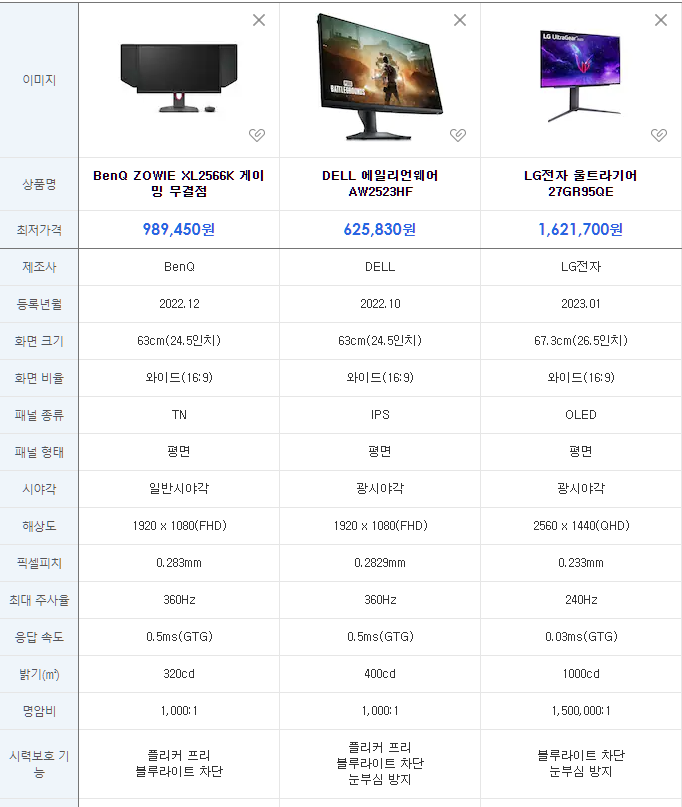 경쟁게임용 모니터를 사려고 고민했다