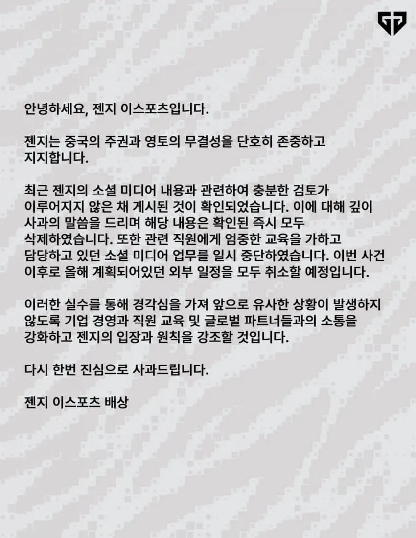 예전에 젠지가 이런 글을 올려서 논란이 되었다